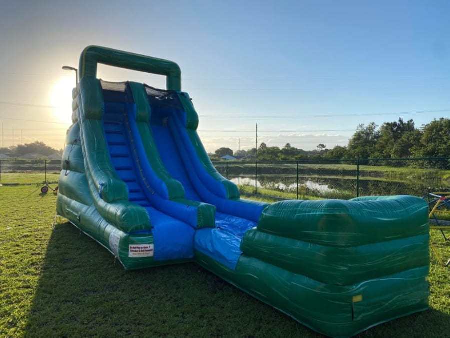 Looking for an inflatable water slide suitable for boys and girls of all ages. Look no further. Our 16 foot tall slide is perfect for any occasion. Slide from the top into a cool refreshing splash area. This is guaranteed to provide a full day of fun in the sun.
